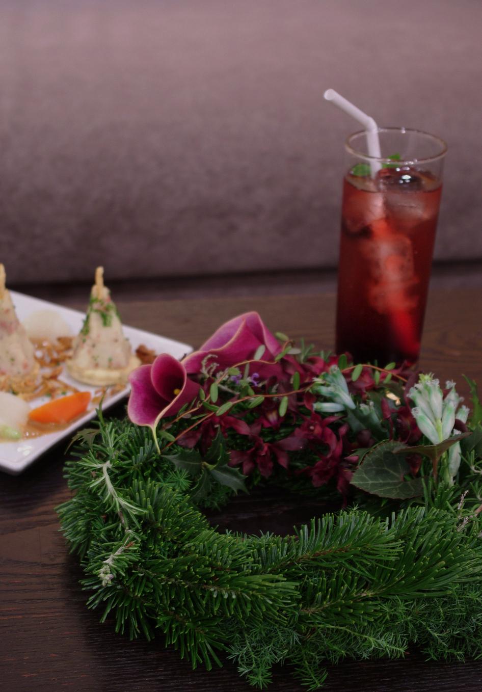 左のお料理はジャーマンポテト(クリスマスツリーになってる!)