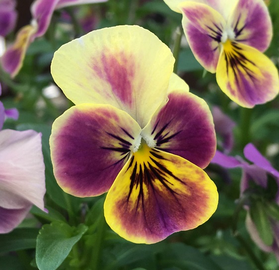 「花弁の根元のところに黄色い目の形の模様」があるのは