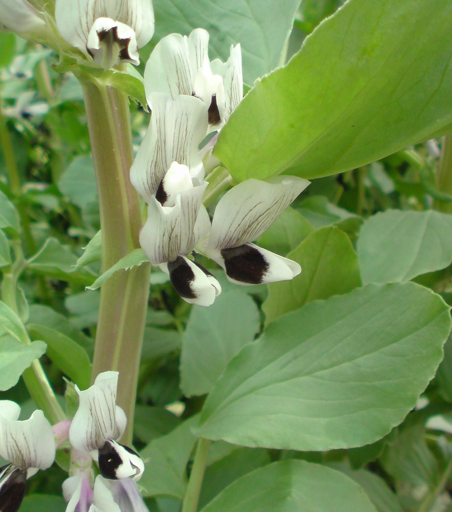 ソラマメの花が満開。